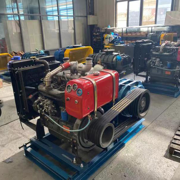 ഡീസൽ ഹൈ പ്രഷർ റൂട്ട്സ് ബ്ലോവറിൻ്റെ ഡ്രൈവിംഗ് രീതി ഡീസൽ എഞ്ചിൻ ഉപയോഗിച്ച് ബ്ലോവറിന് പവർ നൽകുന്നതാണ്. എഞ്ചിൻ ഒരു ഗിയർബോക്സ് ഓടിക്കുന്നു, അത് ഭ്രമണശക്തിയെ ഇംപെല്ലറുകളിലേക്ക് മാറ്റുന്നു. ഇംപെല്ലറുകൾ ഉയർന്ന വേഗതയിൽ കറങ്ങുന്നു, വായുവിലേക്ക് വലിച്ചെടുത്ത് ഉയർന്ന മർദ്ദത്തിൽ ഡിസ്ചാർജ് ചെയ്യുന്നു. ഈ ഡ്രൈവിംഗ് രീതി കാര്യക്ഷമമായ പ്രവർത്തനം ഉറപ്പാക്കുകയും വിവിധ ആപ്ലിക്കേഷനുകൾക്കായി നിർദ്ദിഷ്ട ആവശ്യകതകൾ നിറവേറ്റുന്നതിന് സ്ഥിരമായ വായുപ്രവാഹം നൽകുകയും ചെയ്യുന്നു. ഡീസൽ എഞ്ചിൻ ബ്ലോവറിന് ഊർജം നൽകുന്നതിന് വിശ്വസനീയവും ചെലവ് കുറഞ്ഞതുമായ പരിഹാരം വാഗ്ദാനം ചെയ്യുന്നു, പ്രത്യേകിച്ച് വൈദ്യുതി പരിമിതമായ പ്രദേശങ്ങളിൽ.